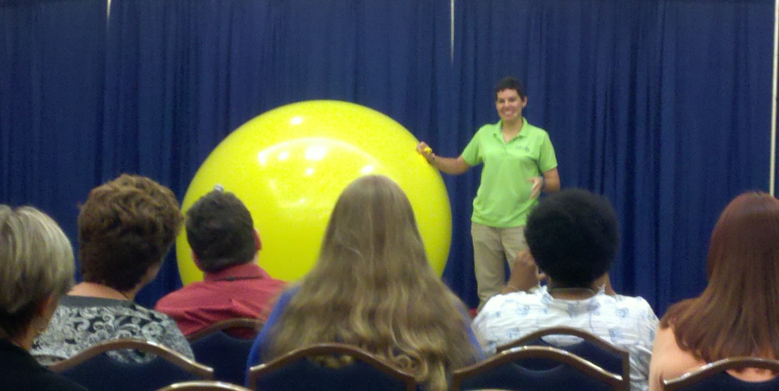 So this lady inflates a giant balloon, crawls into it and pops it. Awesomeness!